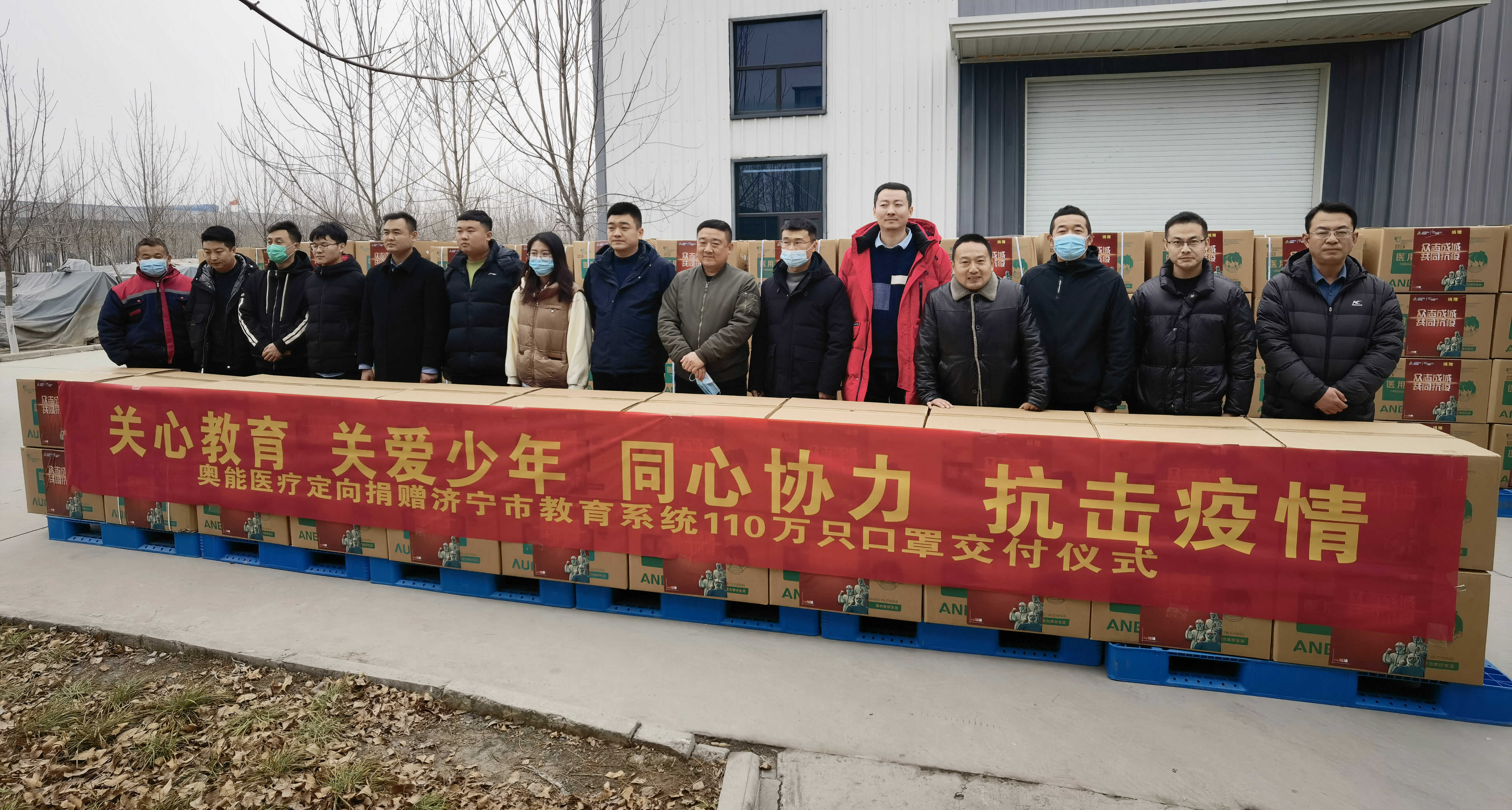 關心教育,關愛少年,同心協力,抗擊疫情!奧能醫療向濟寧市教育系統捐贈110萬只口罩。